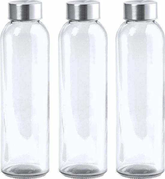 Begroting ⭐ Bellatio Design 3x Stuks Glazen Waterfles/drinkfles Transparant Met Rvs Dop 550 Ml – Sportfles – Bidon ✨