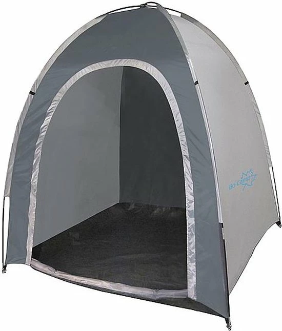 Een ruime opbergtent. Ideaal voor het stallen van fietsen, opbergen van spullen, als omkleedtent of als kooktent. Een multifunctionele tent die compact is mee te nemen en makkelijk is op te zetten. Deze opbergtent is gemaakt van stevig polyester met een waterdichte PU coating (waterkolom van 1000 mm) en een waterdicht grondzeil (waterkolom van 6000 mm). De tentstokken zijn van 8,5 mm fiberglas en het dak is voorzien van getapete naden. De tent wordt compleet geleverd met scheerlijnen, haringen en transporthoes.