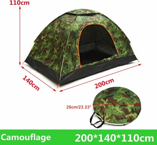 Het keurde 190T polyester taffeta, PU3000-coating, de beste oxford-stof met aluminium staaf van vliegtuigkwaliteit goed. Uitstekende luchtdoorlatendheid van dubbellaags gordijn, ontwerp met dubbele deuren is handig en praktisch. Licht van gewicht en draagbaar, mooi en comfortabel, het is de superuitrusting voor buitenenthousiastelingen en kampeerders.