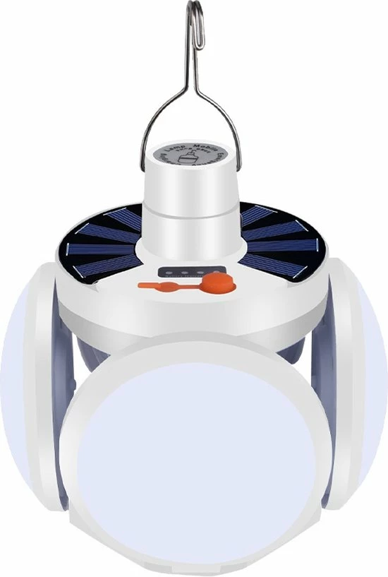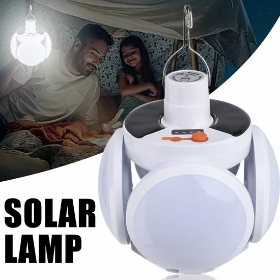 De elektrische solar campinglantaarn is zelfs op 2 manieren op te laden, via een USB-poort of door zonlicht (solar). De gloeilamp is licht en zorgt ervoor dat je nooit moe wordt om hem altijd en overal mee naartoe te nemen. Gemaakt van hoogwaardig ABS en polystyreen en is duurzaam en waterdicht, zonder angst voor regen of vuil.