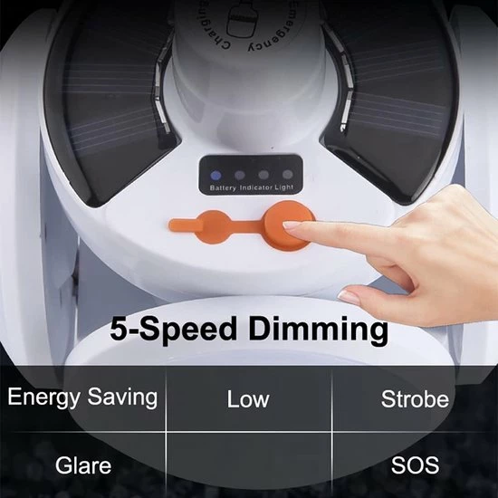 Bevat alles wat je voor de campinglantaarns nodig hebt: 5 modes naar keuze: energiebesparing / laag / verblinding / flits / SOS. Comfortabeler en flexibeler dankzij de een-gestuurde knop.