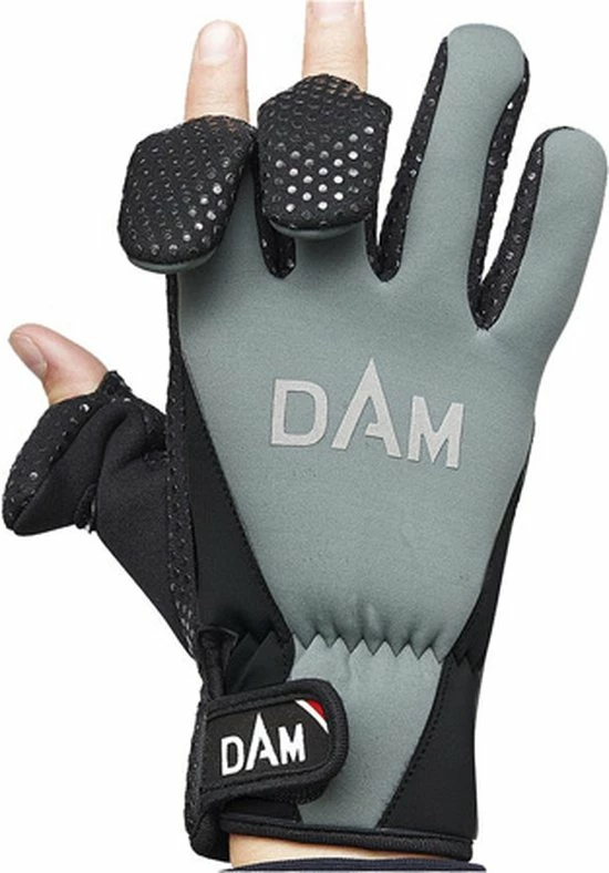 De Dam Neoprene Fighter Glove is voorzien van een rubber patroon op de vingers en handpalm voor antislip grip, tevens vouwbare tips op de wijsvinger, middelvinger en duim. Perfect voor koudere visdagen, wanneer je controle over je vingers wilt houden.