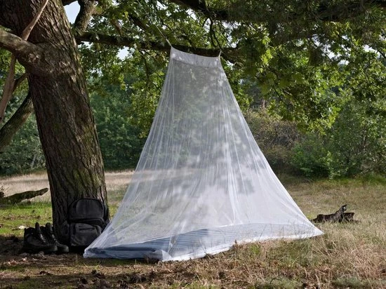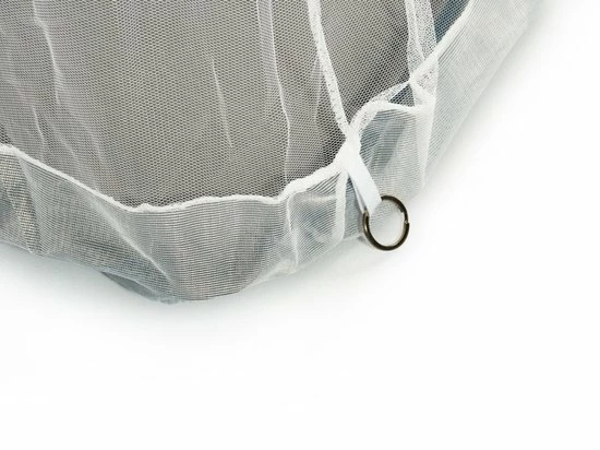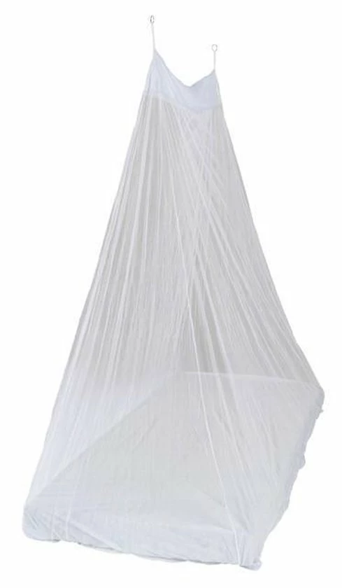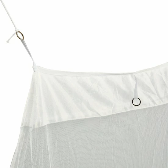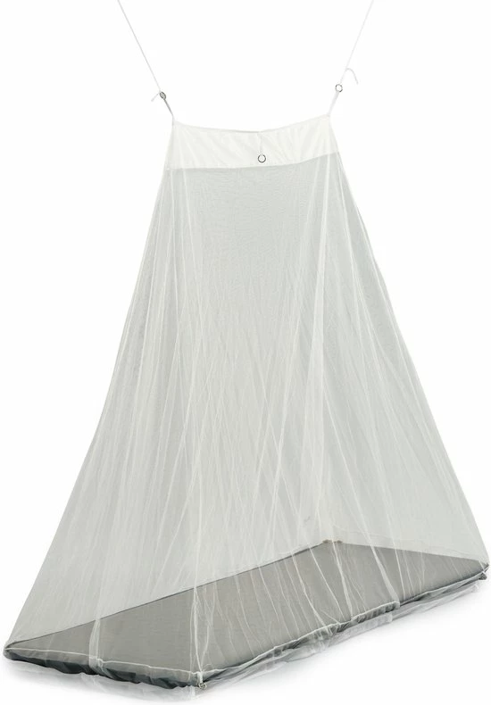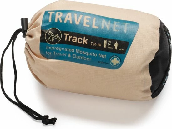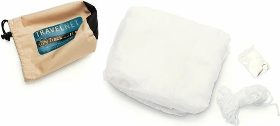 Handig compact net voor trackers. Eenvoudig op te hangen. Met verstevigde strook om onder het matras te stoppen. Geïmpregneerd met Deltamethrin, wat alleen schadelijk is voor insecten. LLIN Long Lasting Impregnated Net. Gegarandeerd 3 jaar functioneel.