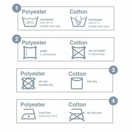 Met koordje eenvoudig aan een vast punt hangen. In kussensloop te wassen op 30 graden, niet centrifugeren en strijken, maar uithangen om te drogen.