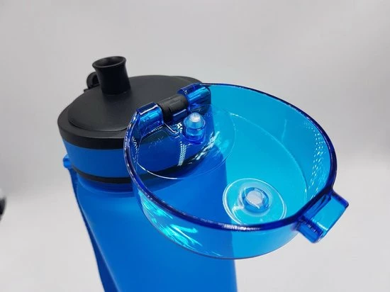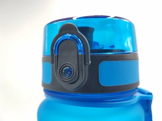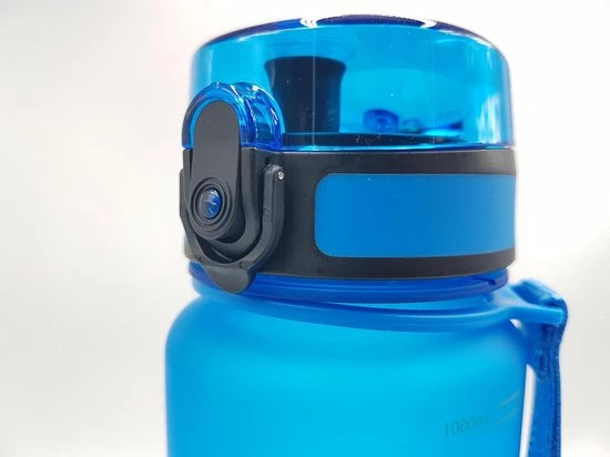 Unieke makkelijk te openen lekvrije sportdop. De (sport) drinkfles ligt goed in de hand. Deze drinkbus is met 1 hand te bedienen, water bidon openen en sluiten met 1 hand om snel even wat te kunnen drinken tijdens het sporten bijvoorbeeld. De Tritan drinkfles heeft een pols bandje om gemakkelijk te dragen of ergens aan op te hangen.
