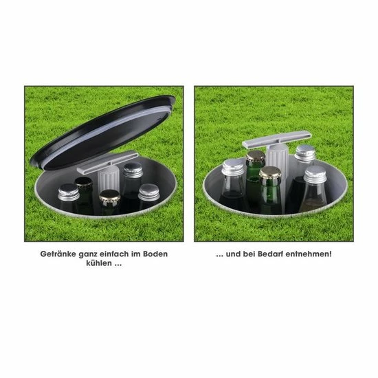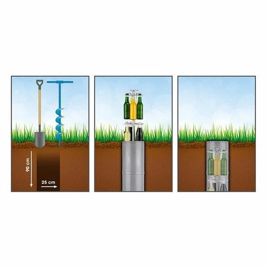 Voor een tuinfeest heb je koele drankjes nodig – jammer, als je dan geen stroomaansluiting hebt voor een koelkast buiten. Met de Easymaxx flessenkoeler outdoor kunt u uw bier, limonade, mineraalwater en andere frisdranken gemakkelijk in de grond koelen – zonder elektriciteit, maar mooi koud en donker opgeslagen.