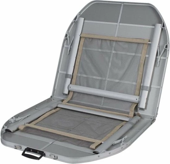 Het aluminium frame met verstelbare poten, is voorzien van een handig krantennetje onder het blad en de pootjes zijn afzonderlijk ongeveer 1 centimeter te verstellen.