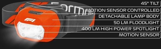 De Formula 1® WL400-hoofdlamp heeft een praktisch sensorsysteem en wordt automatisch geactiveerd en gedeactiveerd door beweging nadat deze van dichtbij is ingeschakeld. Dit betekent dat de lamp contactloos kan worden bediend, bijvoorbeeld met een handbeweging, en zo een optimale en betrouwbare controle tijdens het werk mogelijk maakt. De roodlichtfunctie zorgt voor verblindingsvrij licht, bijvoorbeeld tijdens het kamperen. In geval van nood, gebruikt de lamp de stroboscoopmodus om met een wit knipperlicht de aandacht van omstanders te vestigen op de gevaarlijke situatie. Bovendien is de hoofdlamp beschermd tegen stof en water volgens IP65.