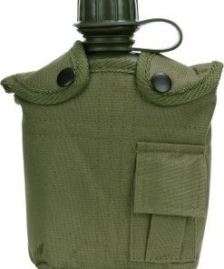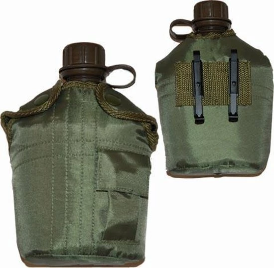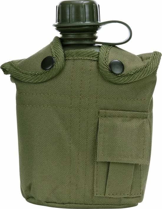 Groene PVC veldfles met hoes om makkelijk te bevestigen aan je riem of rugzak. Door de 1 liter inhoud ideaal om mee te nemen tijdens het hiken of wandelen.