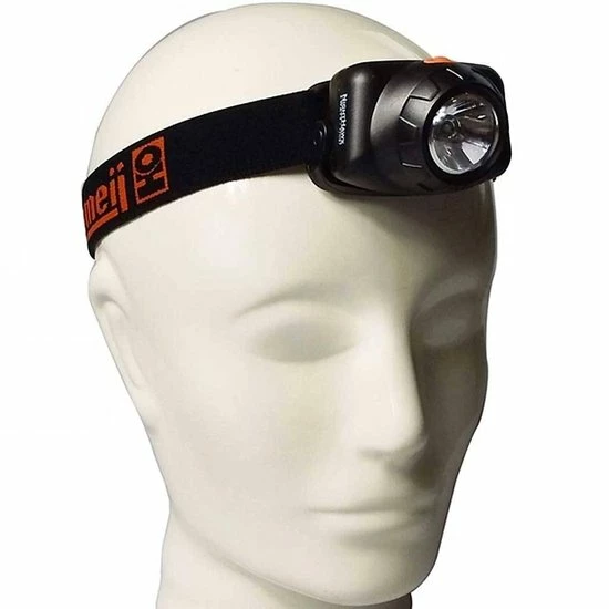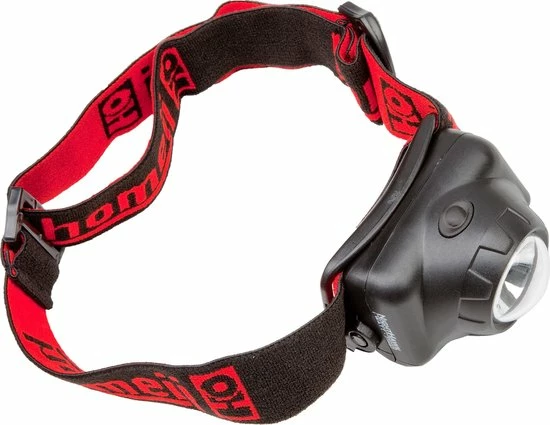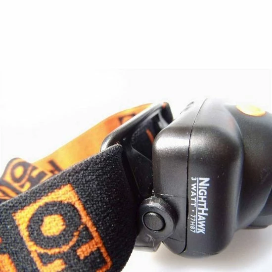 Voor wie hoge eisen stelt is er deze Homeij Night Hawk hoofdlamp met 3 functies: 50% licht (ca. 49 uur licht), 100% licht (ca. 38 uur licht) en knipperlicht. De hoofdlamp heeft met originele CREE Gallium Q3 3 Watt Led een krachtige, felle lichtbundel van ca. 150 lumen en een lichtbereik van ca. 150 meter. Ongelooflijk duurzaam: ca. 10 jaar. Constructie gemaakt van sterke ABS kunststof met verstelbare hoofdband. Veiligheidslens van polycarbonaat, slagvast en onsplinterbaar. Schijn je in de verte of op de grond? Dit is gemakkelijk in te stellen door de hoofdlamp te kantelen tussen 70° en 40°. Spatwaterbestendig volgens IP44 – en schokbestendig. Compact en lichtgewicht. Om de hoofdlamp van batterijen te voorzien druk je de harde knop die de 2 lampdelen verbindt in tot de batterijenhouder opengaat. Plaats 3 AAA-batterijen (inclusief) zoals aangegeven en sluit de houder.