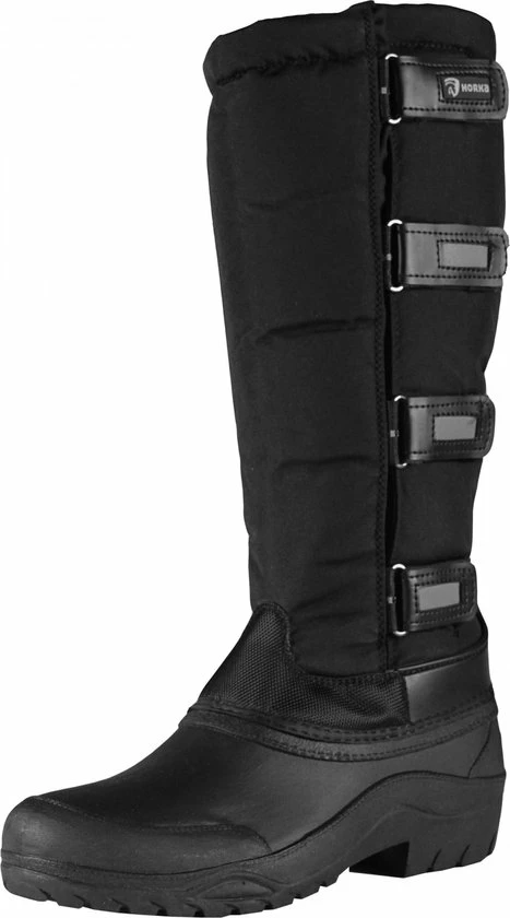 Deze warme, hoge Thermo winterlaarzen van HORKA houden je voeten heerlijk warm tijdens koudere dagen. Ze zitten erg comfortabel en hebben een synthetische bontvoering. Daarnaast zijn ze afgewerkt met polyurethaan en is het voetgedeelte 100% waterdicht. Door de Teflon behandeling zijn de laarzen zelf waterafstotend. Dankzij de reflectieve accenten op de zij- en achterkant kun jij veilig de weg op. De verstelbare sluitingen zorgen ervoor dat de laarzen aangepast kunnen worden aan de meeste kuitwijdtes. Daarnaast zijn deze Thermo laarzen van HORKA voorzien van een platte zolen met een goede grip, hierdoor zijn ze uitermate geschikt voor het paardrijden.