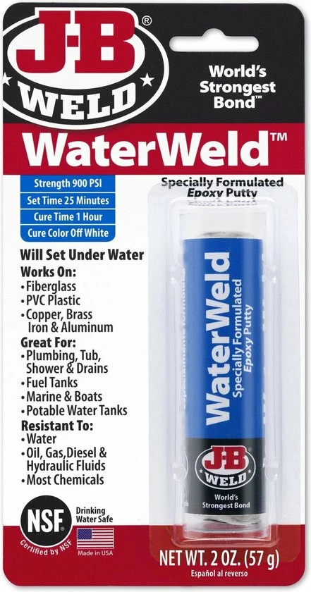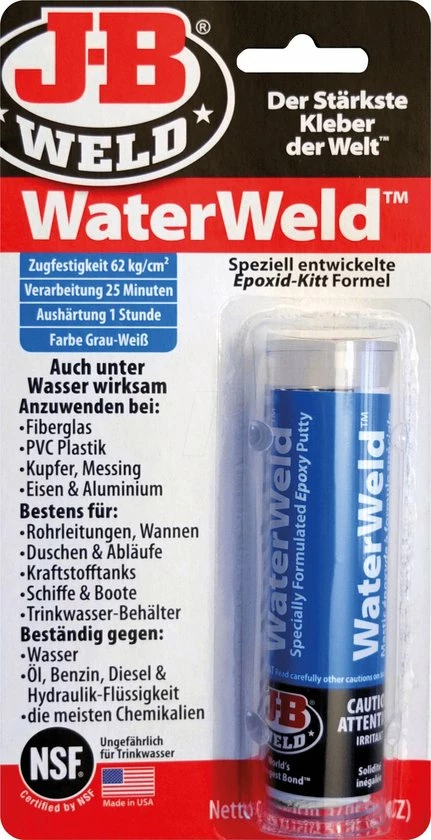 JB-Waterweld plakt zelfs onder water. Het stopt en verzegelt praktisch alles wat lek is: Water- en afvoerpijpen, tanks of emmers