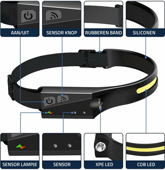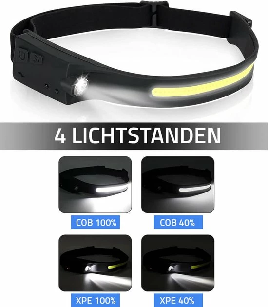 Oplaadbare COB hoofdlamp met ingebouwde bewegingssensor