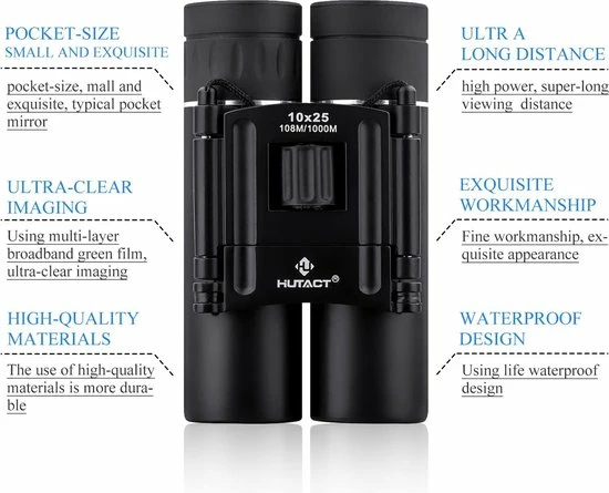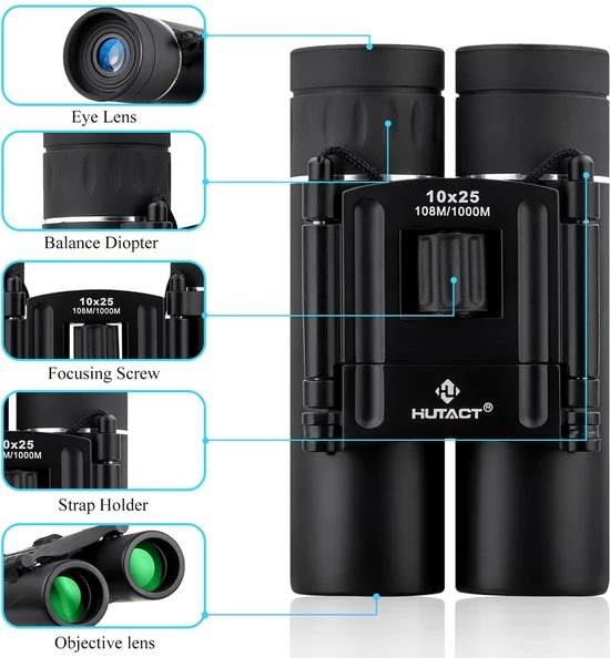 - 丨Verdraagbare verrekijker丨 – De 10×25 verrekijker weegt slechts 250 g (0,55 lb). Opvouwbaar ontwerp, mini-zakformaat, lichtgewicht om mee te nemen. Compact formaat van de verrekijker voor volwassenen: 4,33 * 4,53 * 1,38 inch.