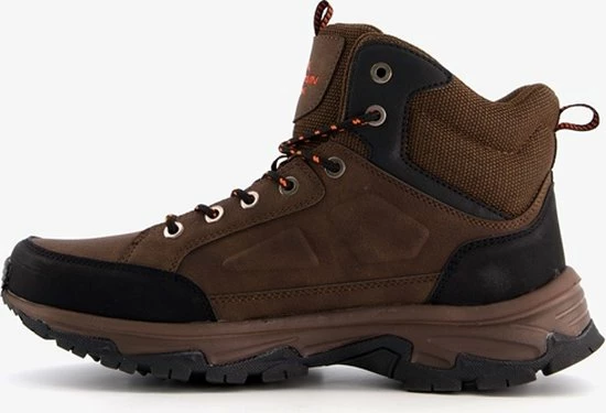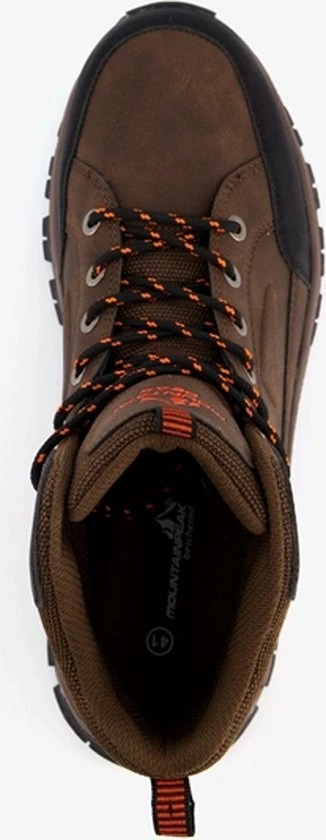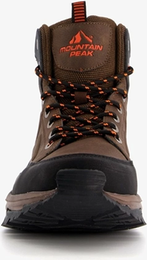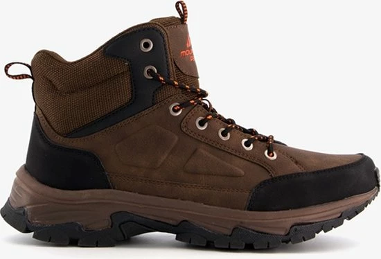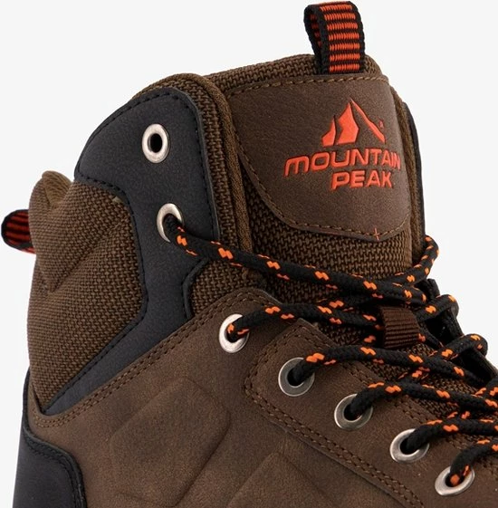 Hoge, bruine wandelschoenen van Mountain Peak uit categorie A/B. Gemaakt van imitatieleer, een binnenwerk van textiel en een stevige profielzool. De wandelschoenen hebben een vetersluiting en aantreklusjes op de hiel en tong voor een makkelijke instap. Het comfortabele voetbed is gemaakt van textiel. Deze is niet uitneembaar zodat je je eigen zooltjes in de schoenen kunt dragen. Categorie A/B wandelschoenen zijn middelhoog en bieden voldoende steun en stabiliteit voor onverharde of ongelijke ondergronden. Ze zijn geschikt als allround wandel- en bergschoenen. De zolen van categorie A/B wandelschoenen zijn nog voldoende soepel.