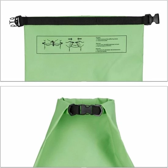 Dan is deze ultra lichte en stevige Dry Bag is ideaal. U kunt uw kleding en kostbaarheden etc. makkelijk op slaan. Als u deze Ocean Bag niet gebruikt kunt u deze eenvoudig opvouwen zodat u hem ruimtebesparend kan vervoeren. Om de waterdichte tas te sluiten klapt u de opening drie keer om en sluit u hem met de klipsluiting aan de zijkanten.