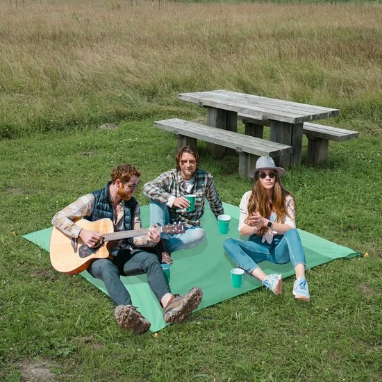 Het groene picknickkleed is de perfecte accessoire voor een dagje uit in eigen land of op vakantie. Of je nu naar het strand gaat, een dagje naar het bos gaat of een fietstocht door Nederland maakt, ons picknickkleed komt altijd van pas. Festival of pretpark? Doe het picknickkleed in je tas en je kunt altijd en overal comfortabel zitten of liggen waar je wilt. Uiteraard kun je hem ook cadeau doen aan je partner, ouders of kinderen zodat zij ook altijd goed voorbereid op stap kunnen!