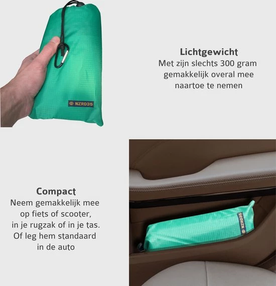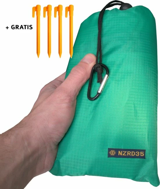Ben je op zoek naar een groot picknickkleed dat zacht is én waterproof? Zoek dan niet verder. Dit groene 200 x 200 cm NZRD35® picknickkleed van sterke parachutestof is ideaal om standaard mee te nemen op elk uitje. Het buitenkleed is custom made in twee kleuren groen. Door het handzame formaat als hij opgevouwen is, past hij gemakkelijk in elke rugzak, tas of fietstas. Natuurlijk leg je hem ook standaard in de kofferbak van de auto of de buddyseat van je scooter.