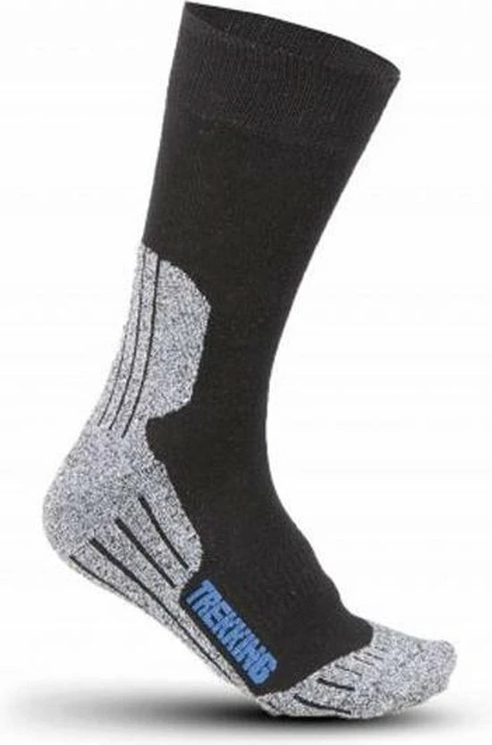 Trekking sportsokken voor volwassenen. Speciale sokken die bescherming bieden tegen vocht. De sokken zijn ademend en sneldrogend. Ergonomische ondersteuning en bescherming voor de voeten dankzij een speciale tricot. Materiaal: 50% katoen, 38% Coolmax, 9% polyamide en 3% lycra.