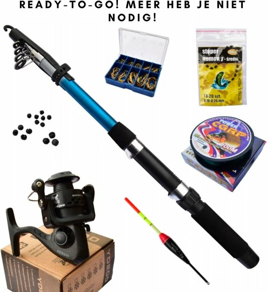 De hengel heeft een lengte van 2,1 meter en is daarmee geschikt om elke vis te vangen. Je kan de hengel inschuiven tot op een lengte van 45,5 cm. De set bevat ook een onthaker zo kan je de vis gemakkelijk losmaken.