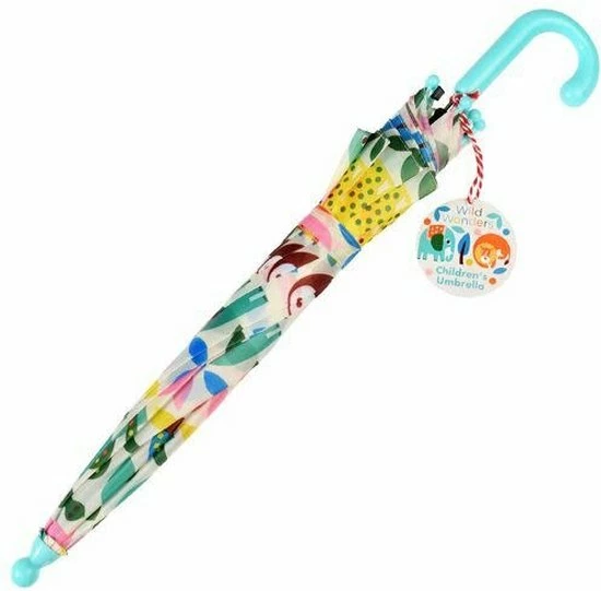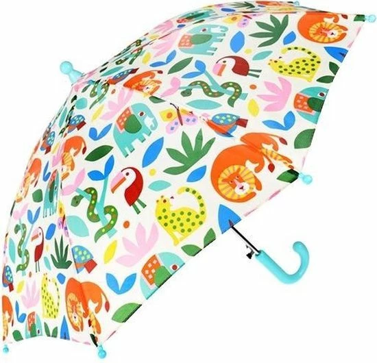 Mooie, stevige kinderparaplu met de print van dieren. De paraplu is voorzien drukknopje waarmee hij automatisch openklapt. Hoogte: 53 cm , Diameter: 70 cm