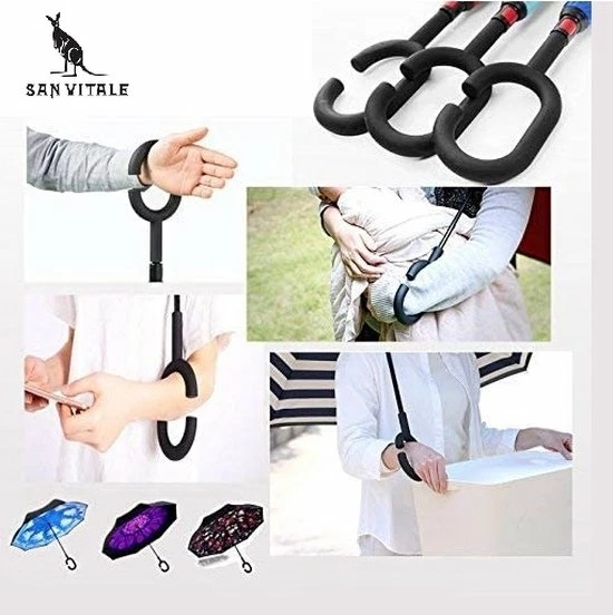 Het handvat heeft veel grip en is makkelijk op te hangen door de speciale C vorm. Daarnaast kunt u de paraplu makkelijk op uw arm laten steunen, wanneer u bijvoorbeeld een tas moet vasthouden. Zo houdt u beide handen vrij!