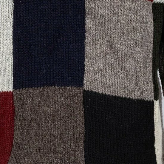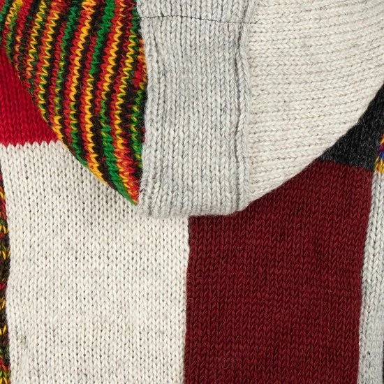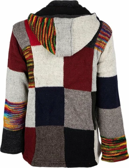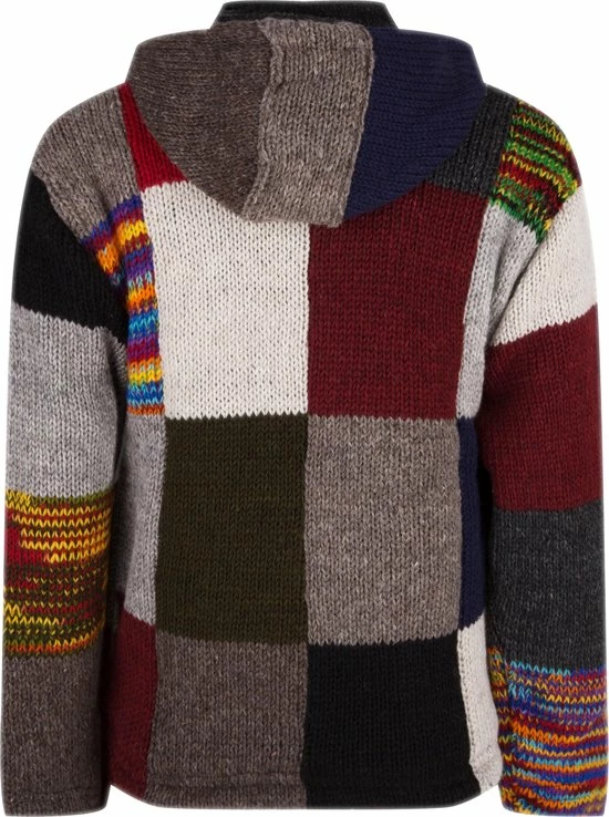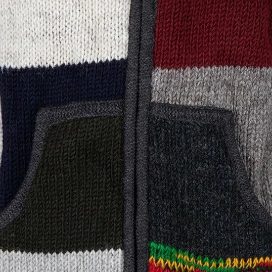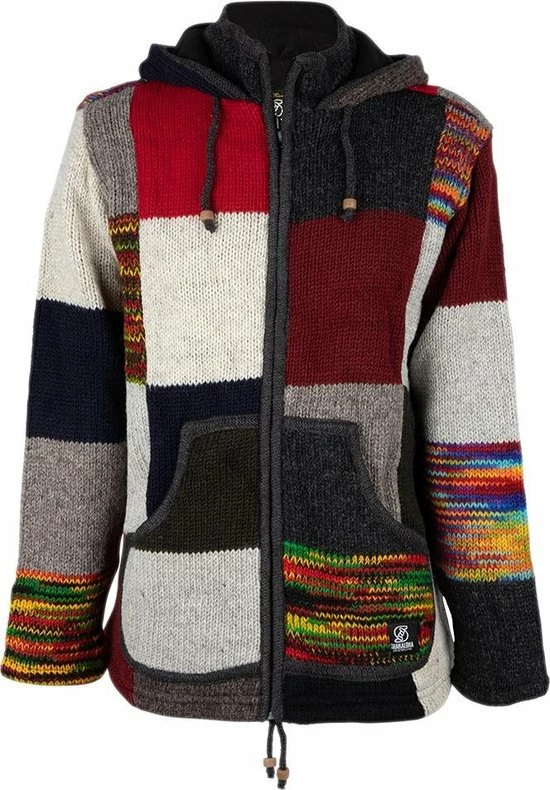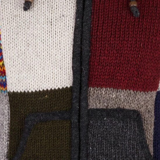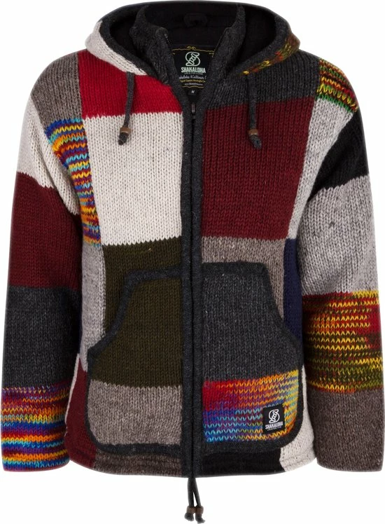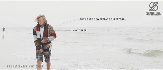 Dit bonte Patchwork wollen herenvest bestaat uit verschillende kleuren en patronen vlakken en heeft een binnenkraag, een vaste capuchon, kangaroozakken en een afsluitbare binnenzak. Dit geliefde vest van Shakaloha is geheel gevoerd met warme fleece zowel op de body, bij de mouwen, in de zakken en de kraag en capuchon. Het vest bestaat uit bonte kleuren en vlakken met natuurkleuren. Dit vest komt in de kleuren zoals op de foto, echter posities verschillen per vest. Dit warme vest kun je dragen als jas in de winter maar is ook zeer comfortabel op frisse zomerdagen. Verkrijgbaar in verschillende kleurencombinaties en in de maten S t/m 3XL. De Shakaloha vesten zijn gemaakt van 100% Nieuw-Zeelandse schapenwol en worden gemaakt in Nepal met respect voor dier en de medewerkers. De vesten kunnen gewassen worden met een beetje wolwasmiddel op 30 graden wolwasprogramma. De naam van dit artikel is M Patch NH Multi XL