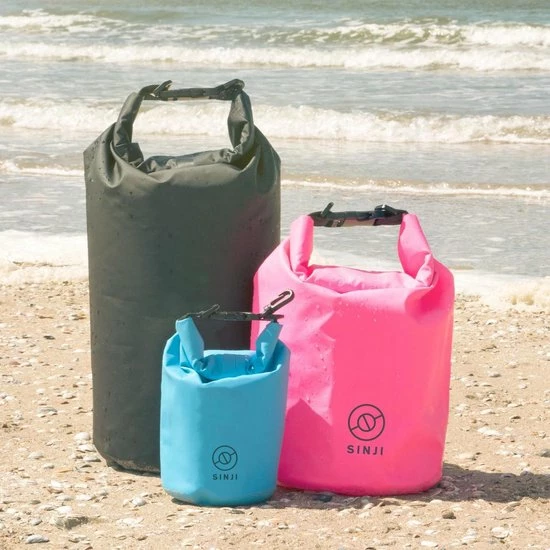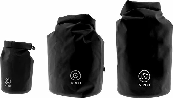 De Sinji Dry Bag is er in drie verschillende maten; 2L, 5L en 10L. De 2 liter tas is ideaal voor het bewaren van kleine items, zoals portemonnees, smartphones of een paar sokken. In de zak van 5 liter kunt u een kleine handtas of een extra paar kleren opbergen, en in de 10-liter tas kan zelfs gemakkelijk een opgerolde slaapzak. Bij het vouwen of oprollen neemt de Dry Bag heel weinig ruimte in, waardoor u deze makkelijk mee kunt nemen, waar u ook heen gaat. Gemaakt van lichtgewicht PVC, de grootste tas weegt slechts 190 gram, zodat u het extra gewicht nauwelijks opmerkt.