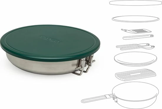 Stanley Adventure All-In-One Fry Pan Set – 9-delig pannenset | Lichtgewicht roestvrijstalen pan | Koekenpanset voor backpacken, wandelen en kamperen | Campingpannen | Vaatwasserbestendig