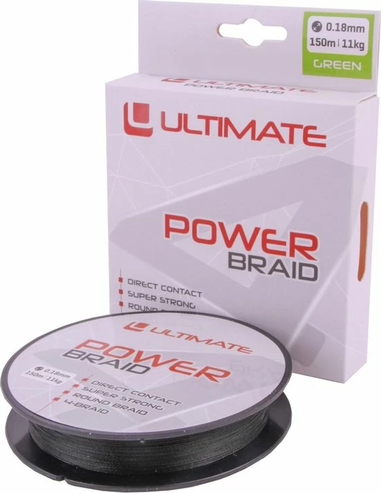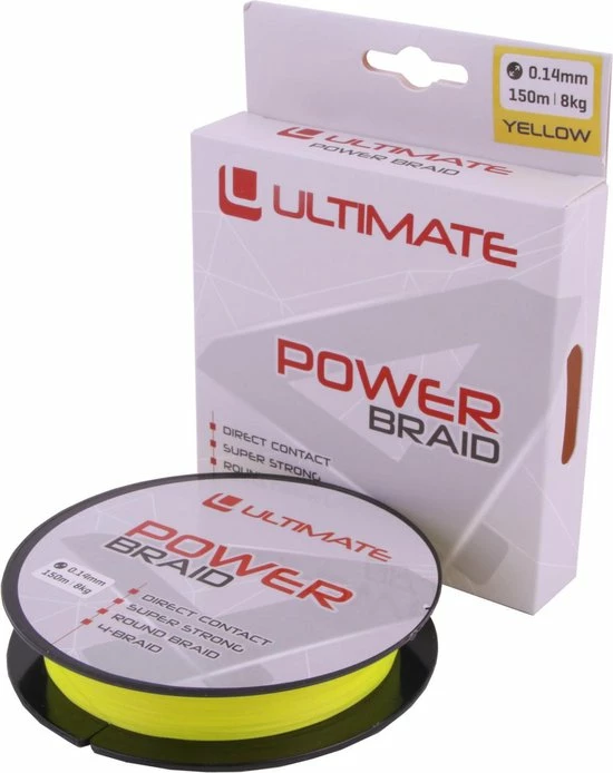 Ultimate Power Braid – Gevlochten lijn – Keuze uit 10 verschillende diameters – Verkrijgbaar in geel en groen – Hoge trekkracht bij een lage diameter – Uitstekende werpeigenschappen – Strak gevlochten – Schuurbestendig – Rekloos – Neemt weinig water op – Goede knoopsterkte – Perfect contact met je aas! – Geschikt voor veel vormen van visserijUltimate Power Braid is allround inzetbaar voor alle visserijen met kunstaas of natuurlijk aas. Door de hoge trekkracht bij een lage diameter kun je met dunnere lijn vissen. Hierdoor wordt je aaspresentatie beter en vis je scherper. De lijn is strakgeweven en neemt hierdoor weinig water op. De gladde en ronde vorm zorgen voor uitstekende werpeigenschappen, ook met licht (kunst)aas. Power Braid is rekloos, waardoor je een beter gevoel en betere controle hebt. Niet alleen aanbeten worden perfect doorgegeven, maar ook bewegingen van de hengeltop worden één-op-één doorgegeven aan je kunstaas!
